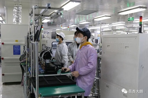 萬卓培一行在大朗鎮相關負責人的陪同下,前往福日電子二級控股子公司廣東以諾通訊有限公司開展調研,深入企業車間,了解企業生產情況以及未來發展規劃,并就企業提出的生產經營中問題和困難進行了交流。